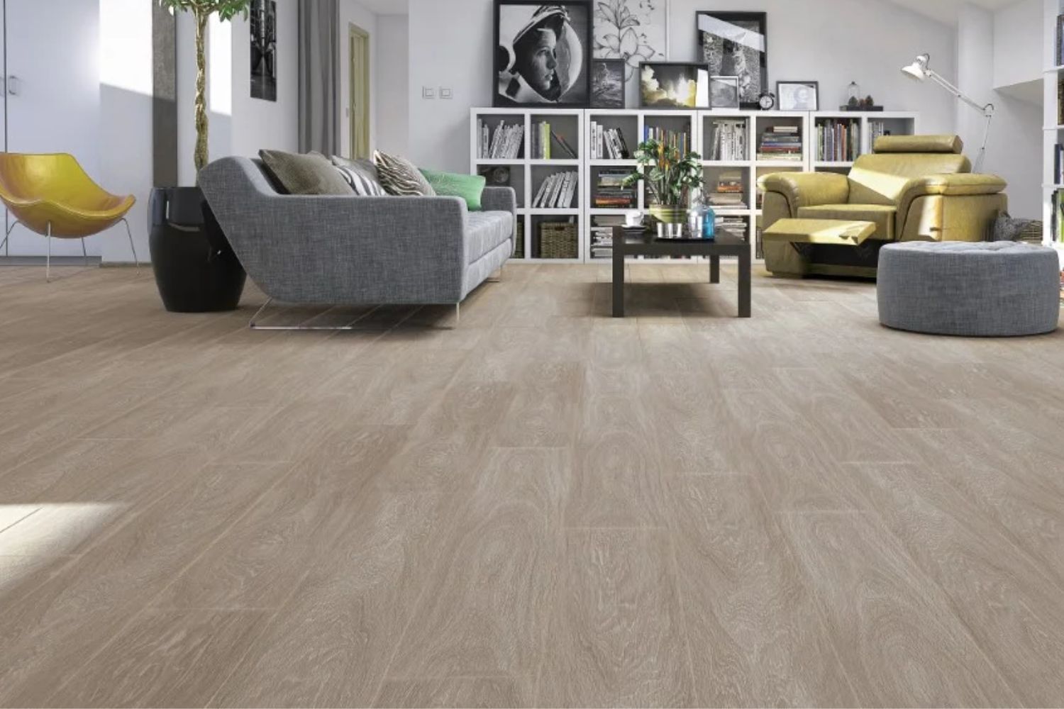 Evoke an atmosphere of calm sophistication with Dapple Grey Oak laminate flooring. This exquisite choice features nuanced grey tones interwoven with complex woodgrain patterns, presenting a canvas that is both soothing and engaging. Constructed to meet AC4 standards, the flooring combines enduring durability with captivating visual appeal, making it a top choice for a wide range of settings, from intimate homes to bustling commercial spaces.