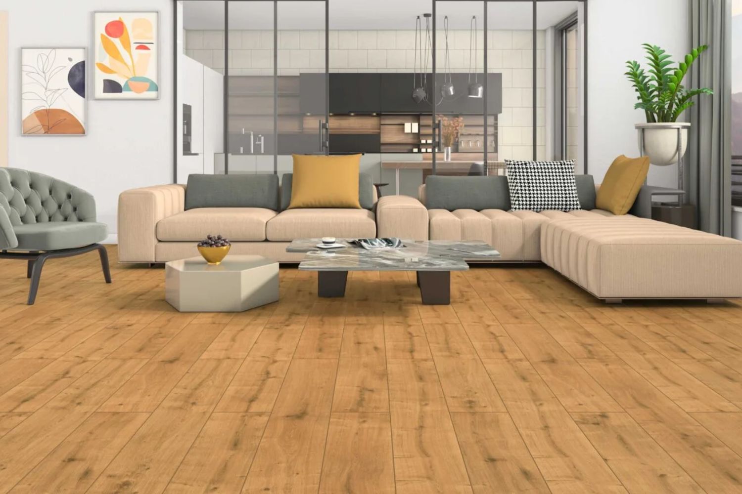 Farmhouse Oak laminate flooring offers a sanctuary of comfort, evoking the rustic charm and gentle sophistication often reserved for idyllic countryside estates. As you walk into a room graced by this enchanting floor, you’re greeted by a tapestry of inviting brown hues that speak to timeless traditions and simple elegance.