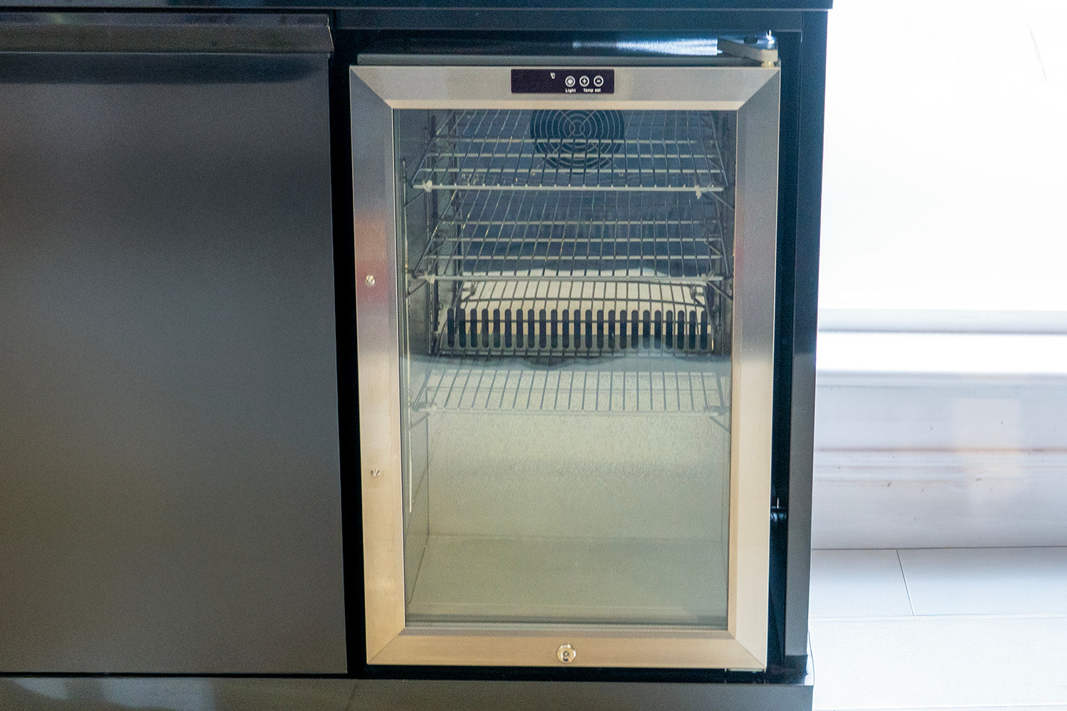- Internally lit built-in fridge/wine cooler w/ Lights + Temperature Control