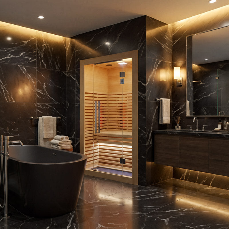 A two-person infrared sauna offers a spacious yet cozy retreat, using gentle infrared heat to warm the body directly rather than heating the air. This creates a soothing, efficient, and deeply penetrating warmth that promotes relaxation and wellness. Its compact design makes it ideal for shared sessions or extra room to stretch out solo.