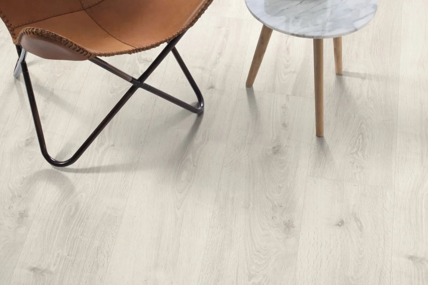 White Bayford Oak is a 10mm water-resistant long plank laminate with a v-groove on all four sides, offering protection against moisture for up to 24 hours. The soft white tones and delicate oak grain bring a clean, bright feel to larger spaces. With an AC5 rating, this floor is suitable for heavy use in both domestic and commercial settings, and it’s also suitable for bathrooms.